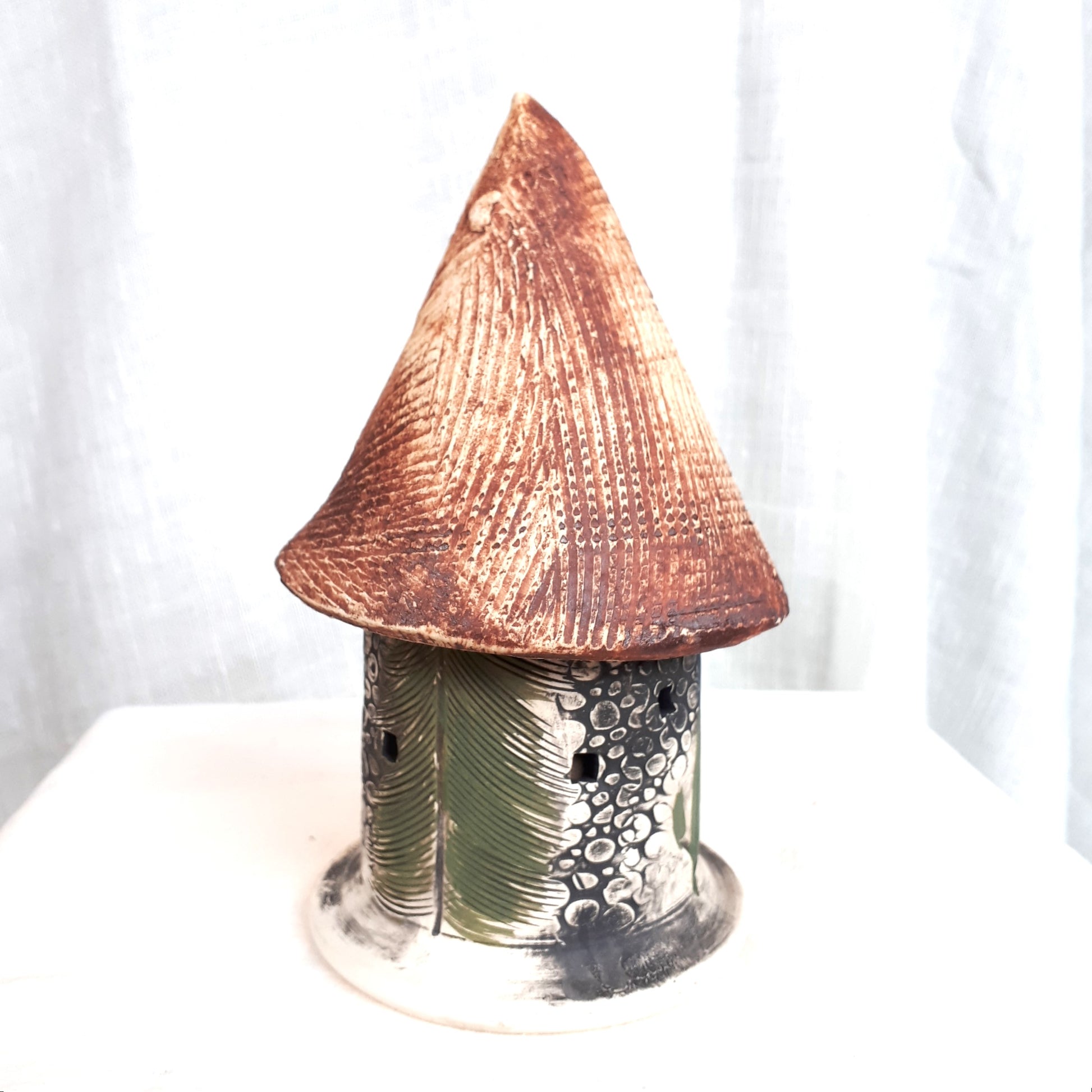 Each Lady Bug Castle is handcrafted using natural stoneware and fired to2000*F, making it entirely weatherproof. They will maintain their beauty in ice, snow or intense heat. No fading, no cracking. Each Lady Bug Castle measures about 7" x 4" with a removable lid.