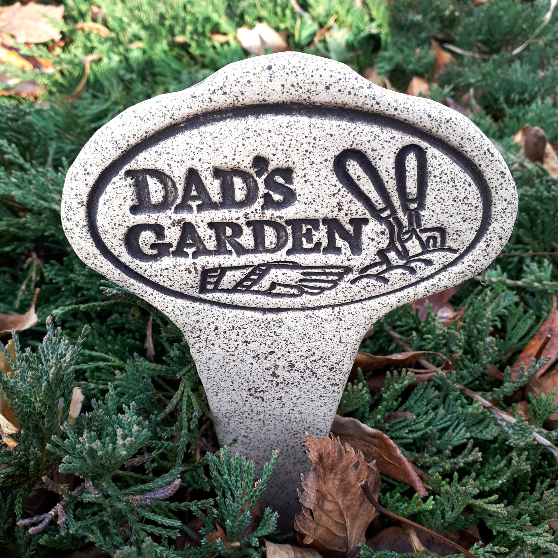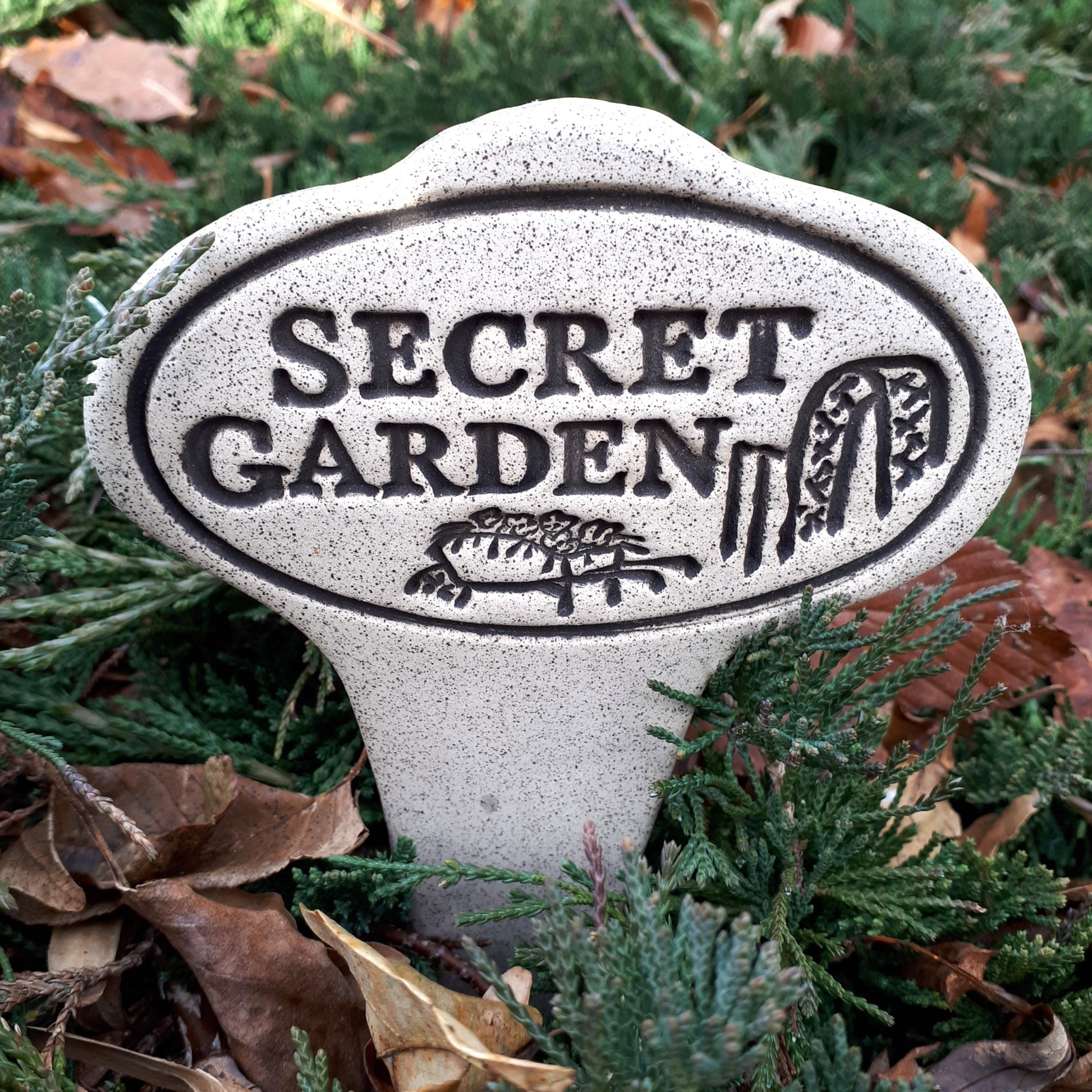 Each Garden Theme is handcrafted using natural stoneware and fired to 2000*F, making it entirely weatherproof. They will maintain their beauty in ice, snow or intense heat. No fading, no cracking. Each Garden Theme measures about 3 1/2" x 7".