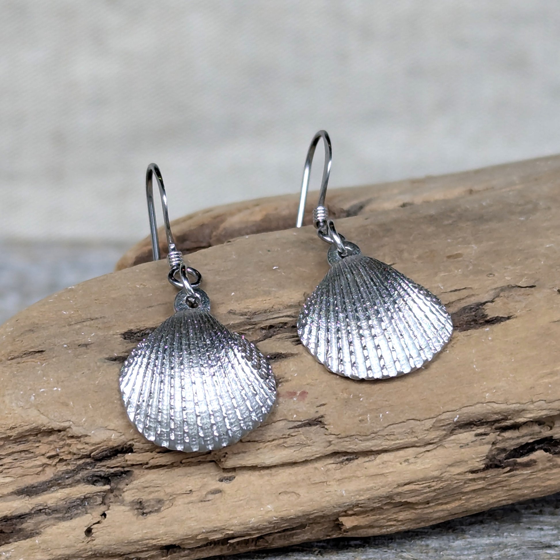 The beautifully shaped scallop shell has been featured in art, architecture and religion throughout history. Earring wires are hypoallergenic surgical steel.