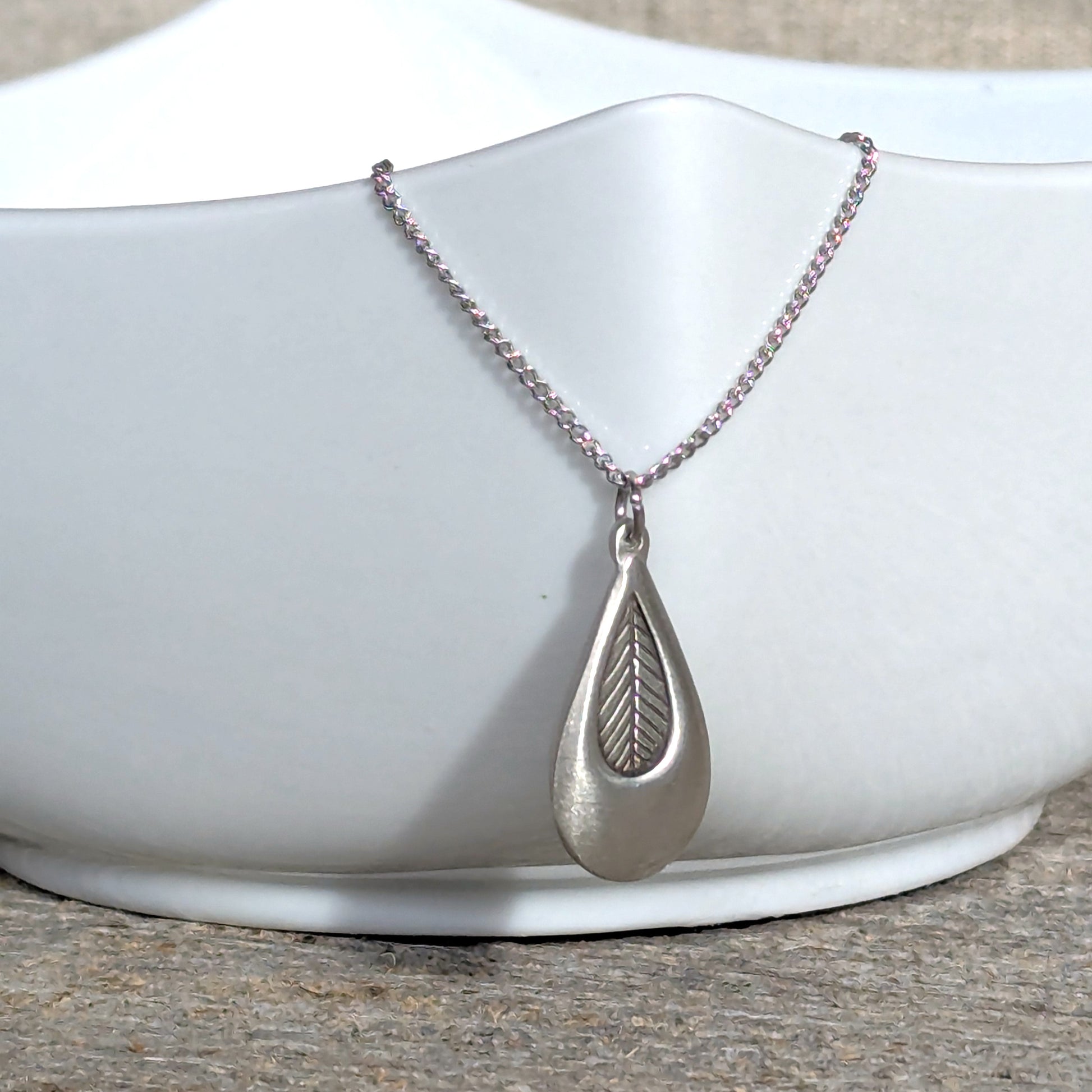 - Necklace: 1" x 0.5" pendant on 18" chain