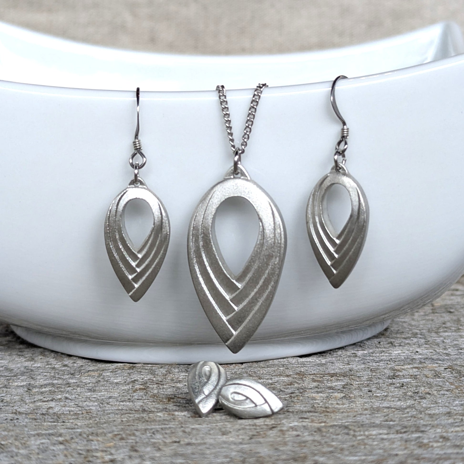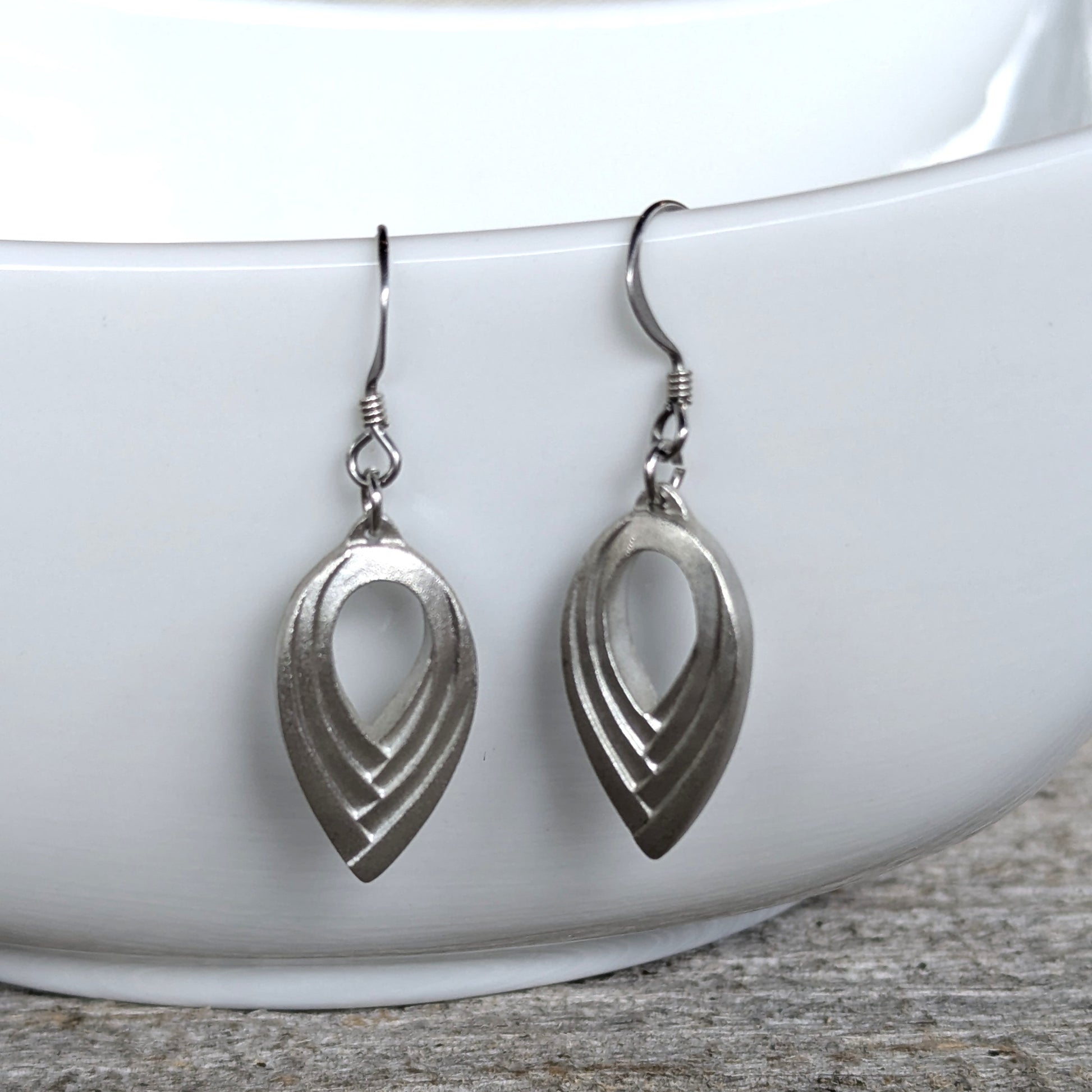 Versailles - A layered tear drop design makes this piece unique. Earring wires are hypoallergenic surgical steel.