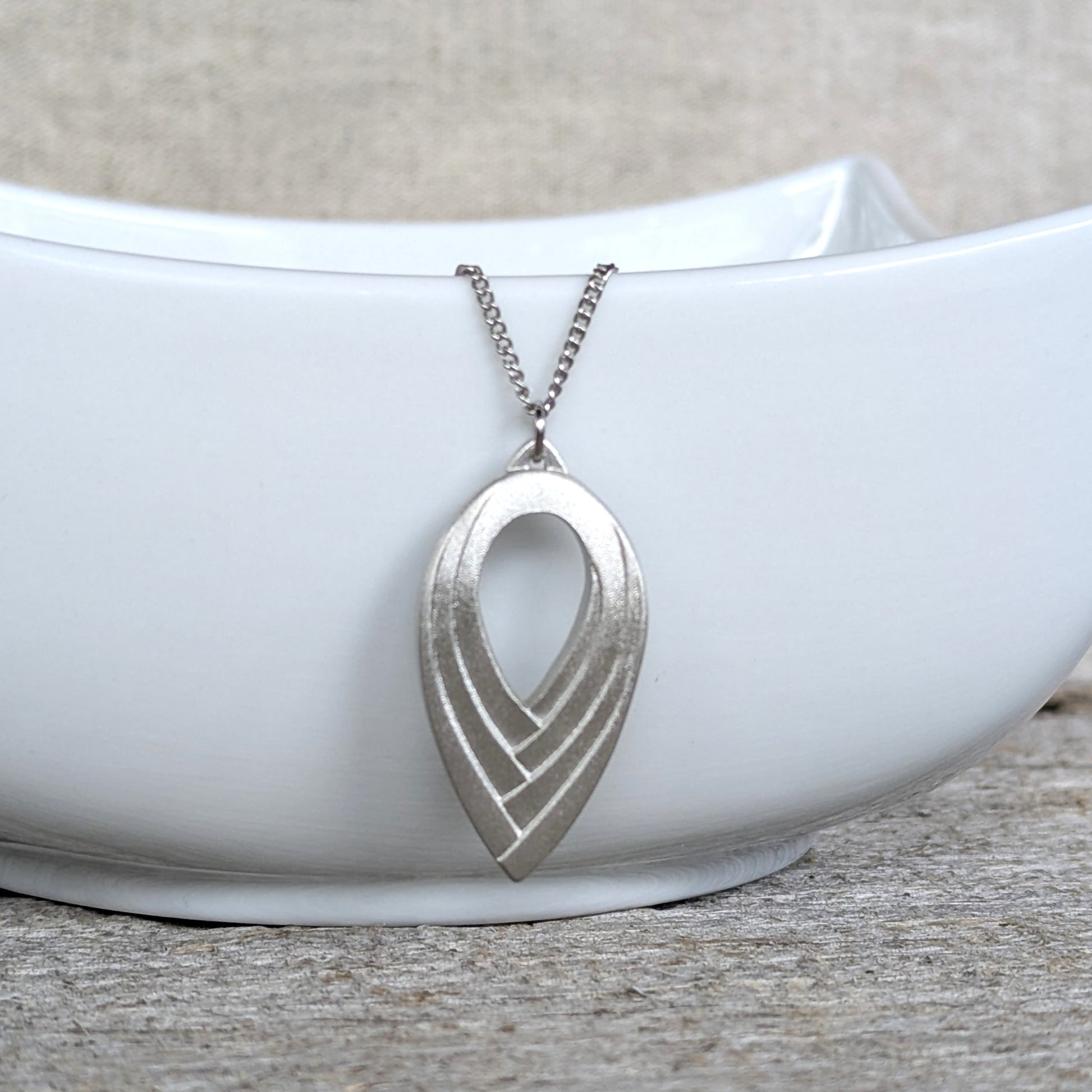 - Necklace: 1.5" x 0.75" pendant on 18" chain
