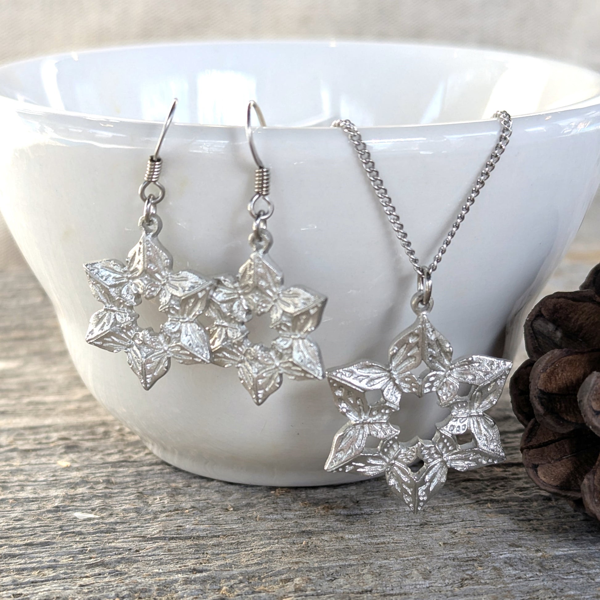 Winter Blossom – Celebrate the winter season with this beautiful snowflake themed collection. Earring wires are hypoallergenic surgical steel.