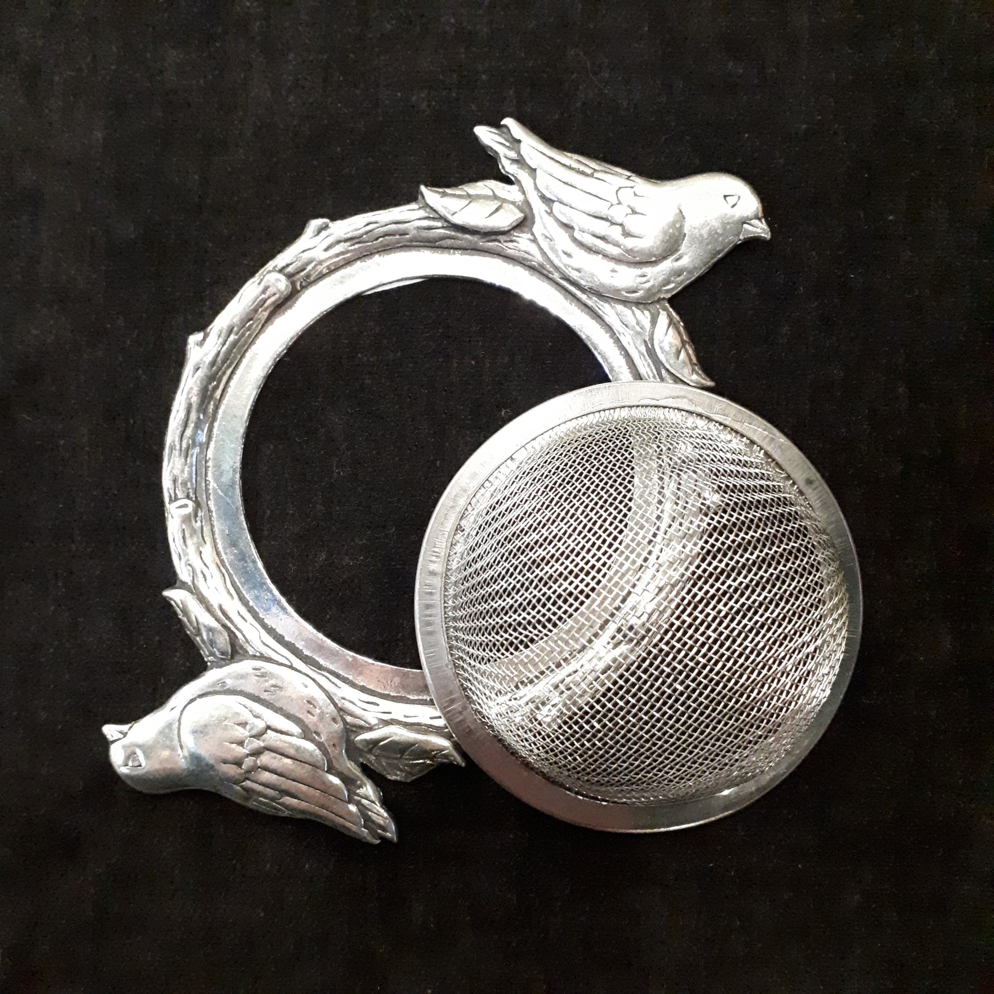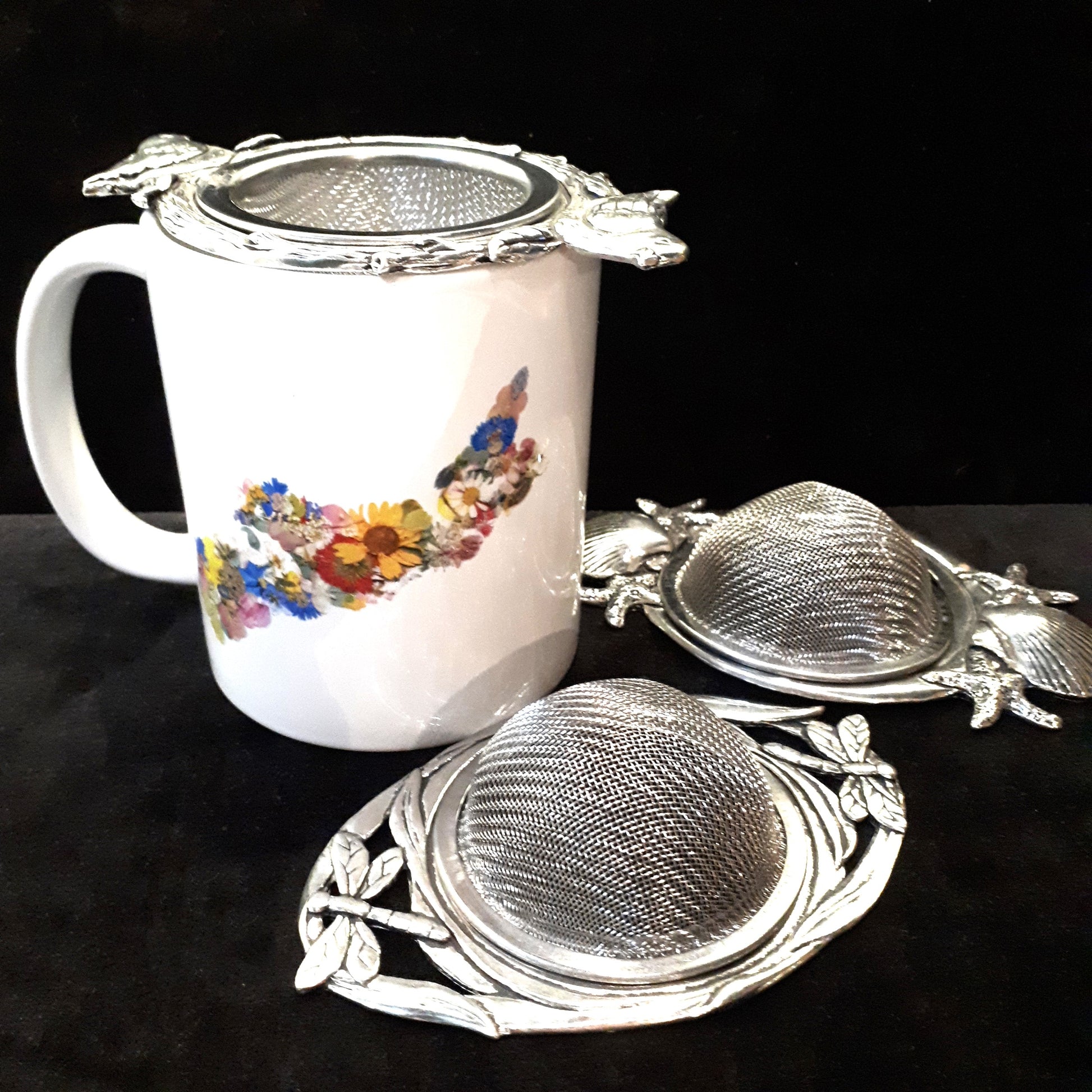 These two piece tea strainers by Basic Spirit are perfect with your favourite loose tea. The stainless steel mesh is removable for easy cleaning while the pewter ring fits on top of your favourite tea cup or mug.