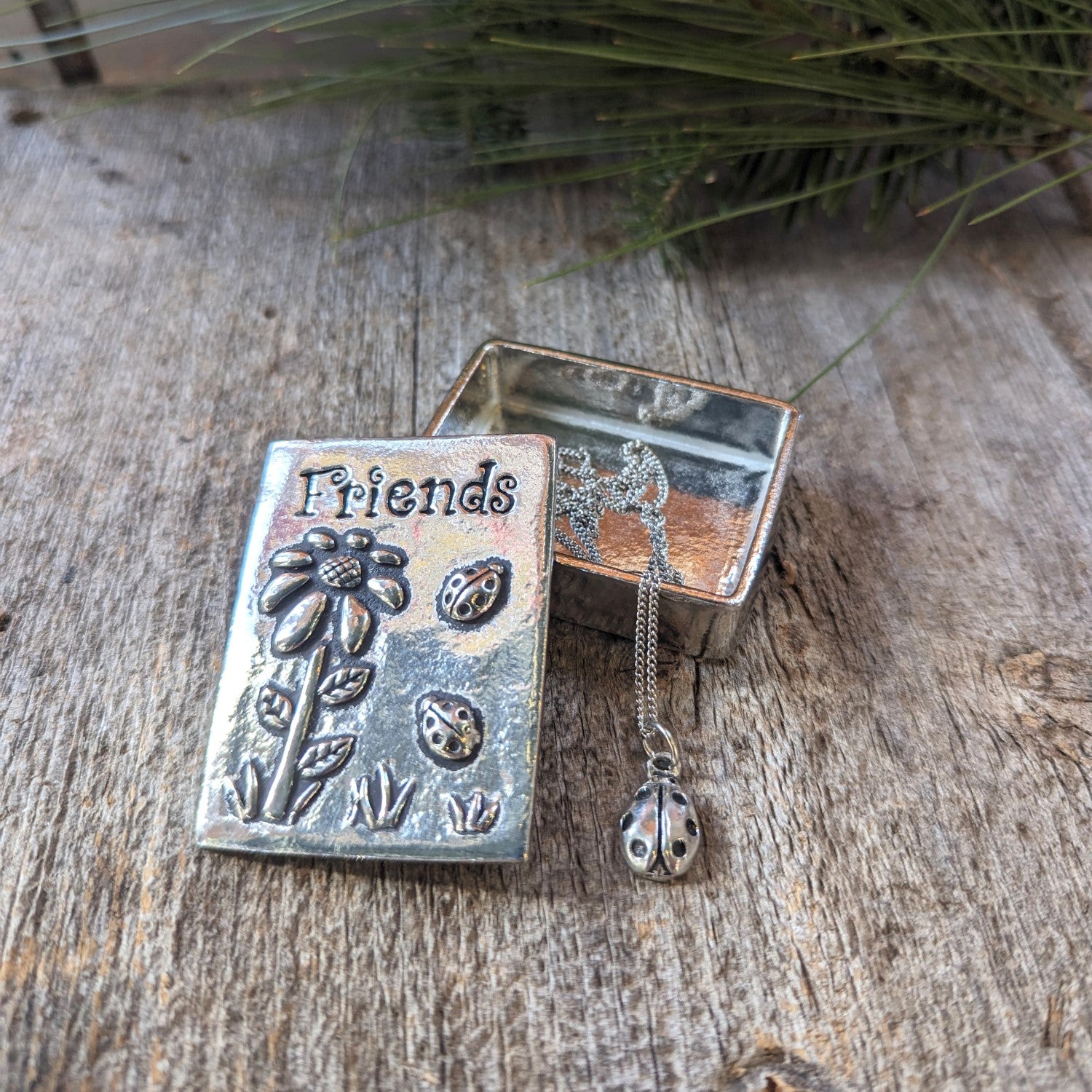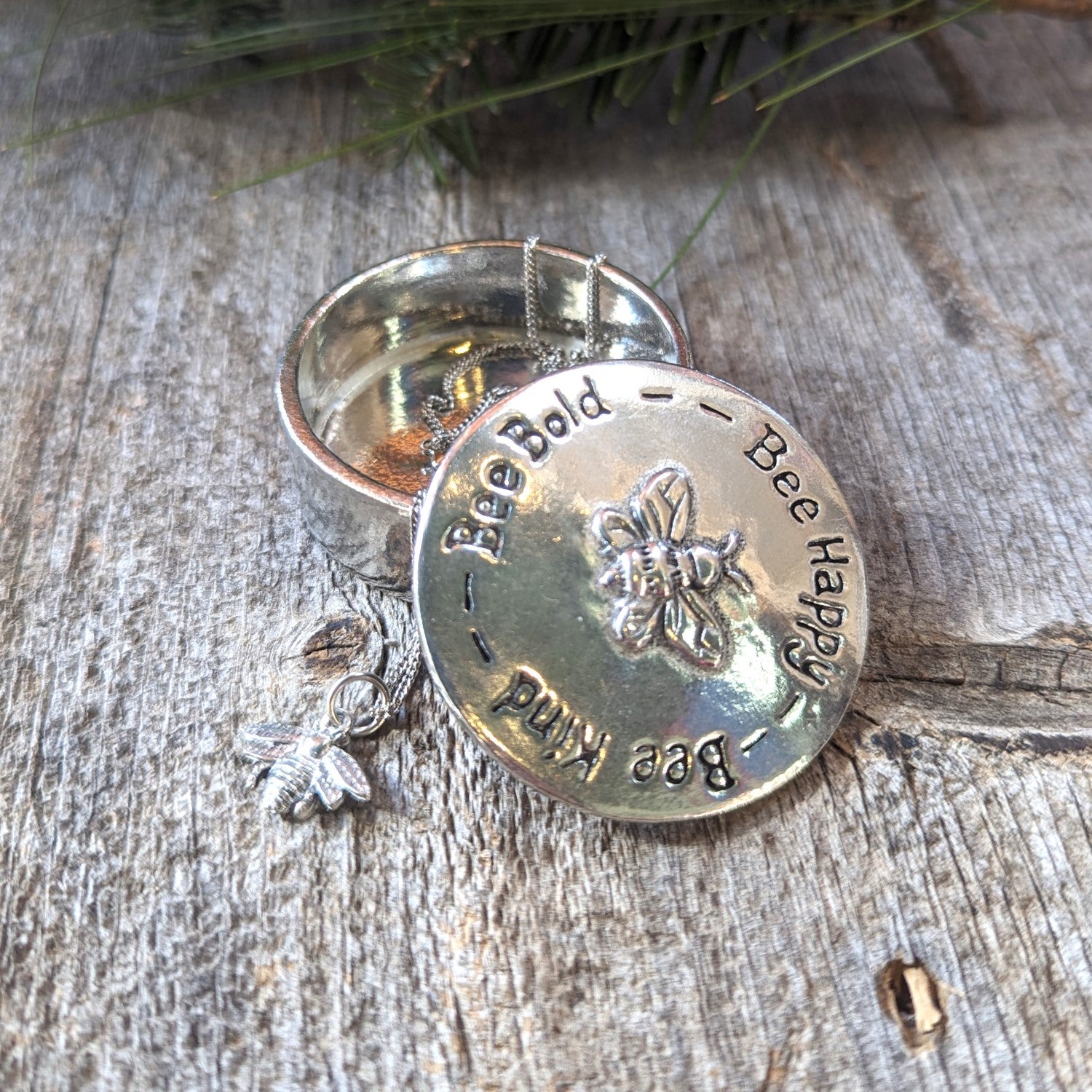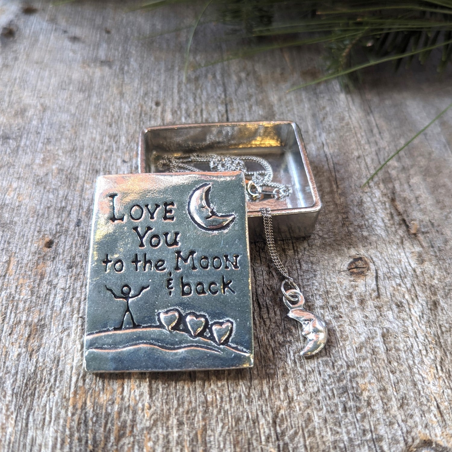 Wish Boxes come with a matching necklace inside. Each necklace is 18" long with a rhodium plated chain. Each oval or square shaped wish box is approximately 1.5"x 2" and 0.5" deep and round ones are approximately 2" in diameter and 0.5" deep.