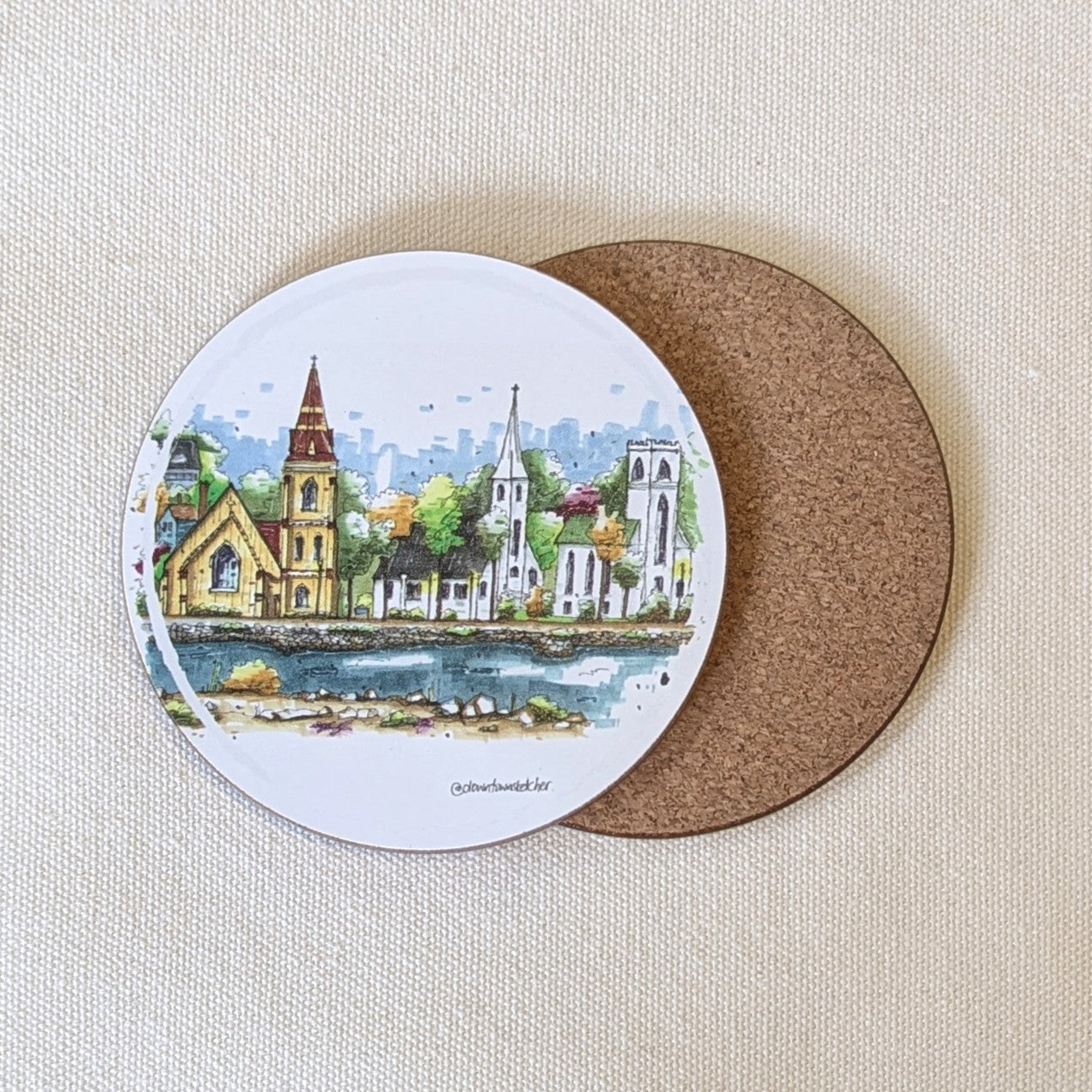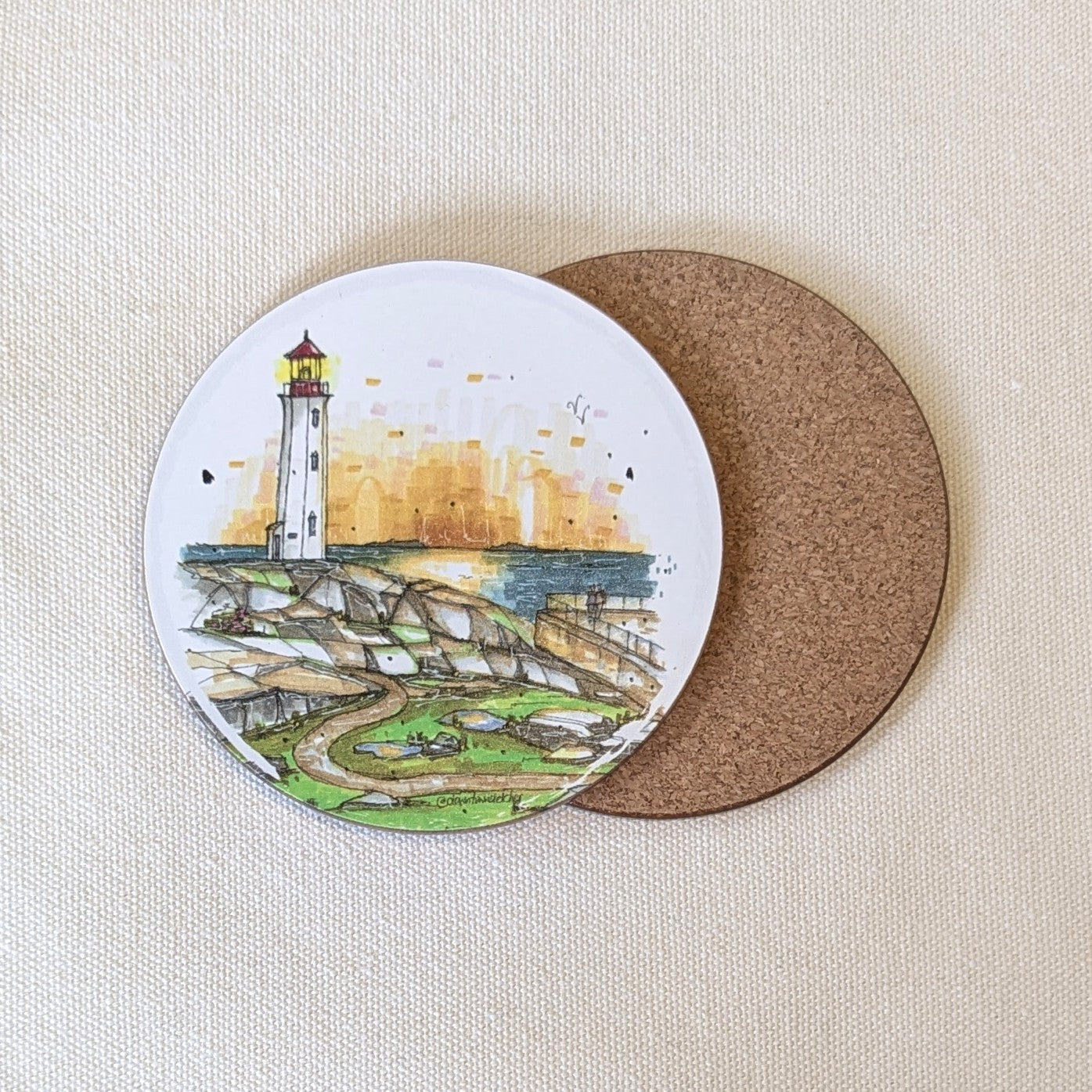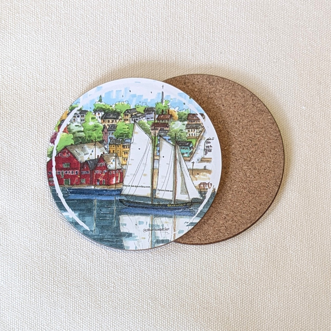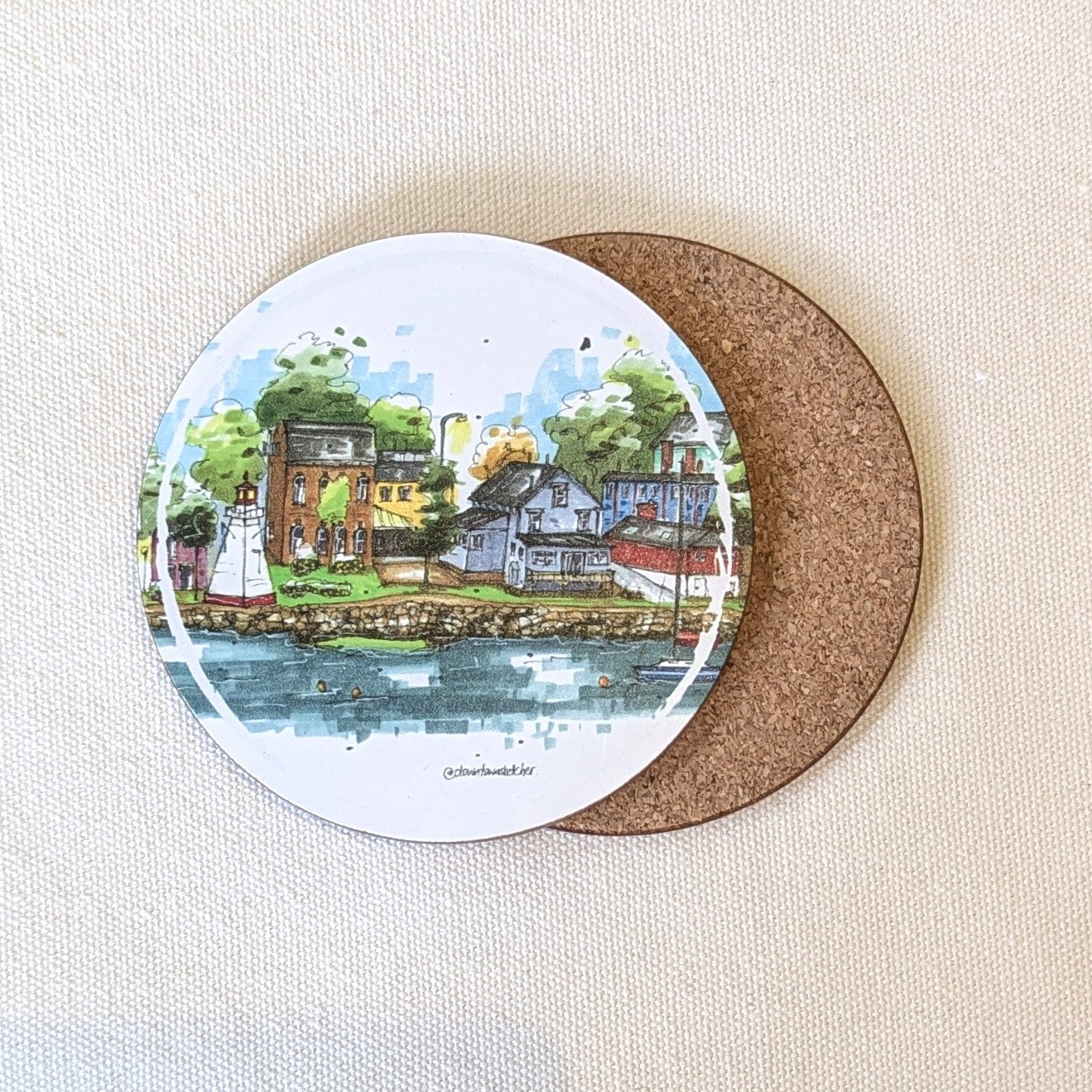 These delightful coasters feature hand-drawn sketches lovingly capturing the essence of local landmarks, storefronts, and iconic eateries. With their practical cork backing, they make the perfect gift for loved ones or a delightful addition to your own home or office - bringing the region's beauty and maritime spirit to your daily routine.