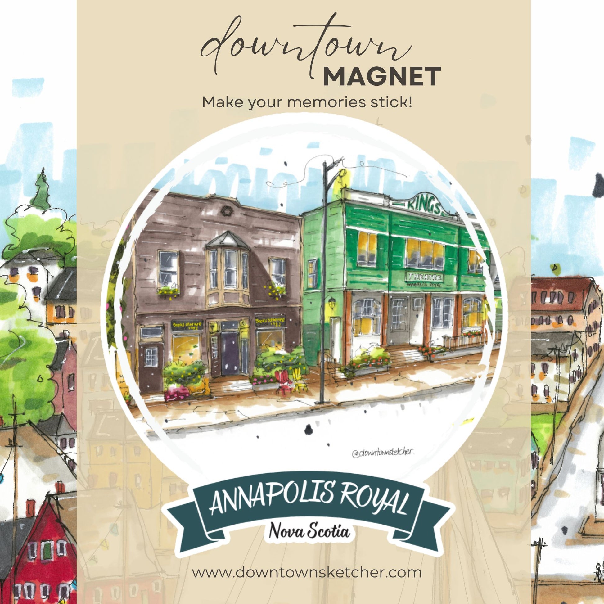 The Downtown Magnet is a captivating piece that brings iconic landmarks to life with rich and vibrant colors. This magnet is a true celebration of the picturesque charm of a Nova Scotia town, capturing its essence in a delightful and cherished memento.