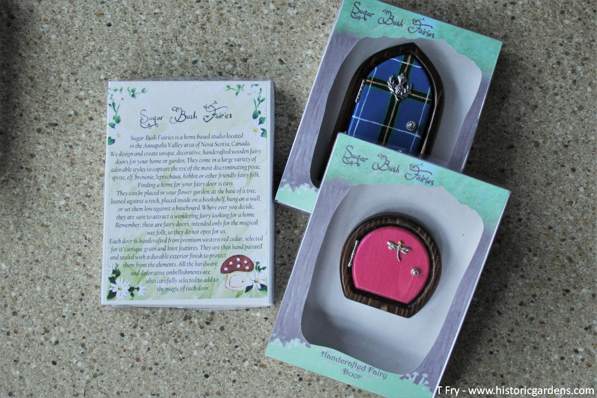 Made from premium western red cedar by Sugar Bush Fairies in nearby Digby, these fairy doors are sure to bring some joy to your home or yard. Place them in your garden, on a bookshelf, against the base of a tree, on a wall or against a baseboard and they are sure to attract a wandering fairy looking for a friendly home.