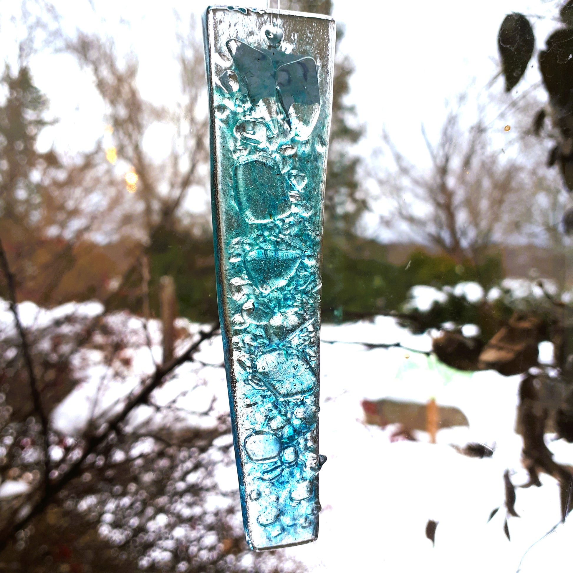 These beautiful, fused glass ornaments are made in Annapolis Royal by The Glass Bakery. Each ornament is a unique piece of art. The shape is first cut in clear glass. Layers of powdered coloured glass are then applied between the clear layers. Each piece is kiln baked, fused at ultra high temperatures then carefully cooled for resilience.