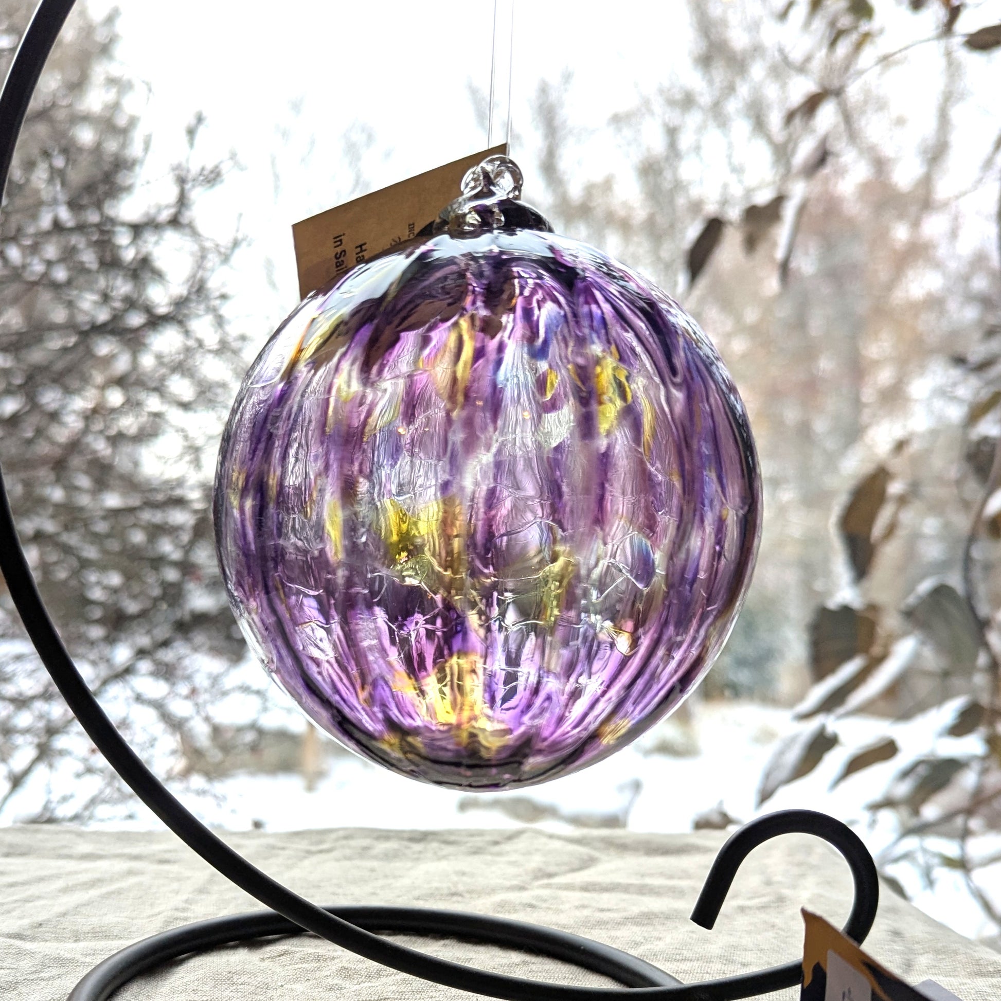 These beautiful hand blown ornaments are traditionally know as symbols of friendship. Hand indoors or outdoors for magnificent splashes of translucent vibrant colours that dance in the sun. Masterfully crafted with exquisite rich and rare coloured glass. Each ball is approximately 4" in diameter.