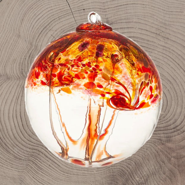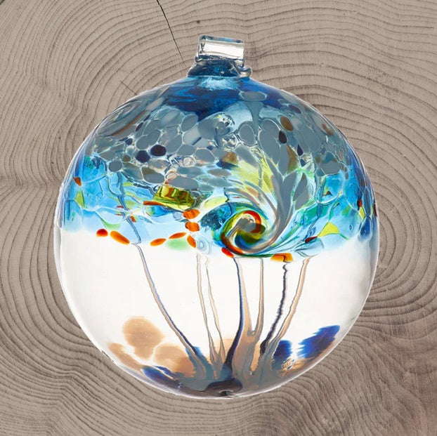 Inspired by and created with the four elements – Air, Earth, Fire, Water – these orbs will inspire and challenge you. The colours are swirled on the top half of this orb and webbing is pulled from bottom to top.