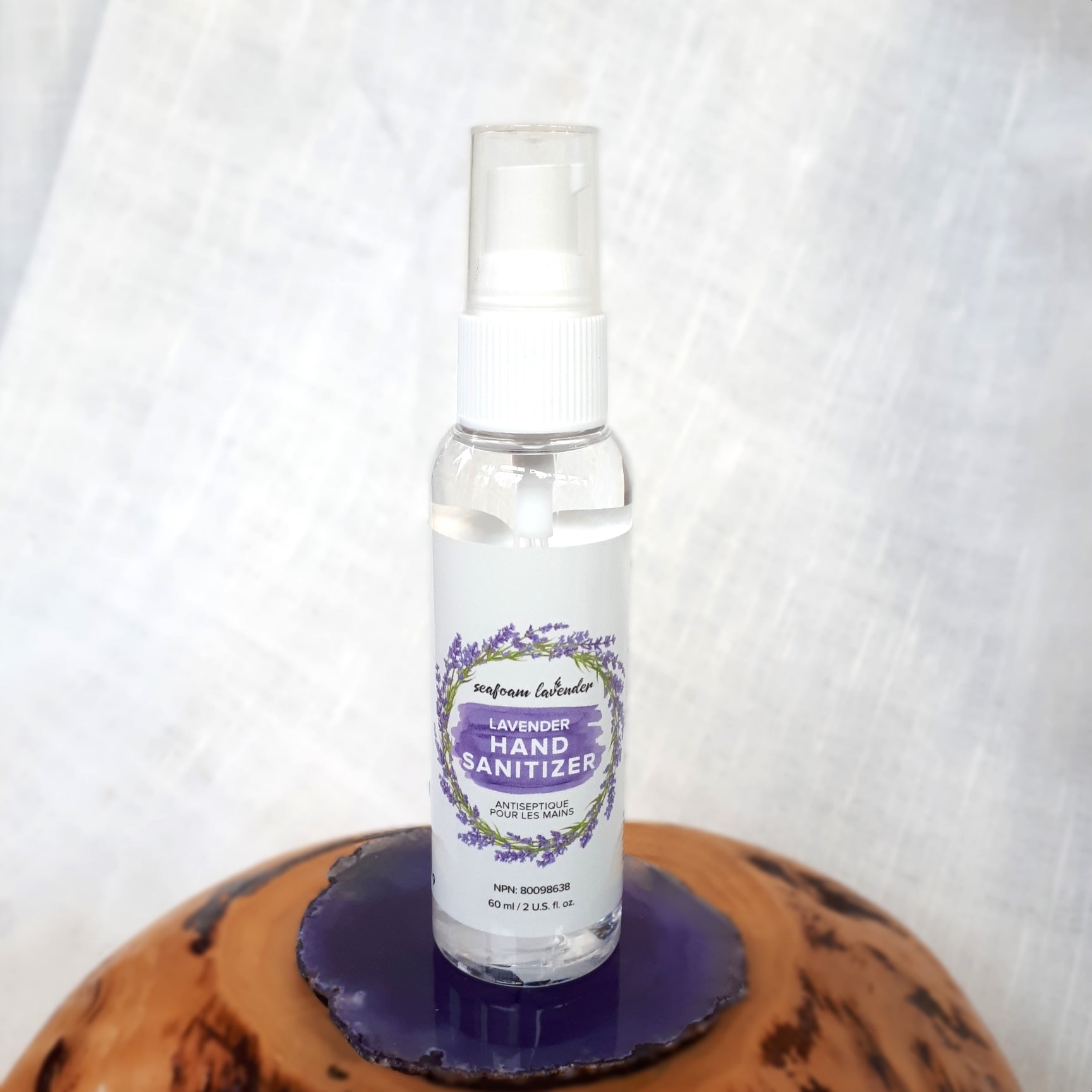 Health Canada-licensed, and made to specifications published by the World Health Organization, our lavender hand sanitizer can be used for hand hygiene when soap and water are unavailable. 75% isopropyl alcohol kills harmful germs, while glycerine and aloe vera juice nourish and moisturize your skin. After the alcohol dries, your hands are left with the calming scent of our lavender essential oil.
