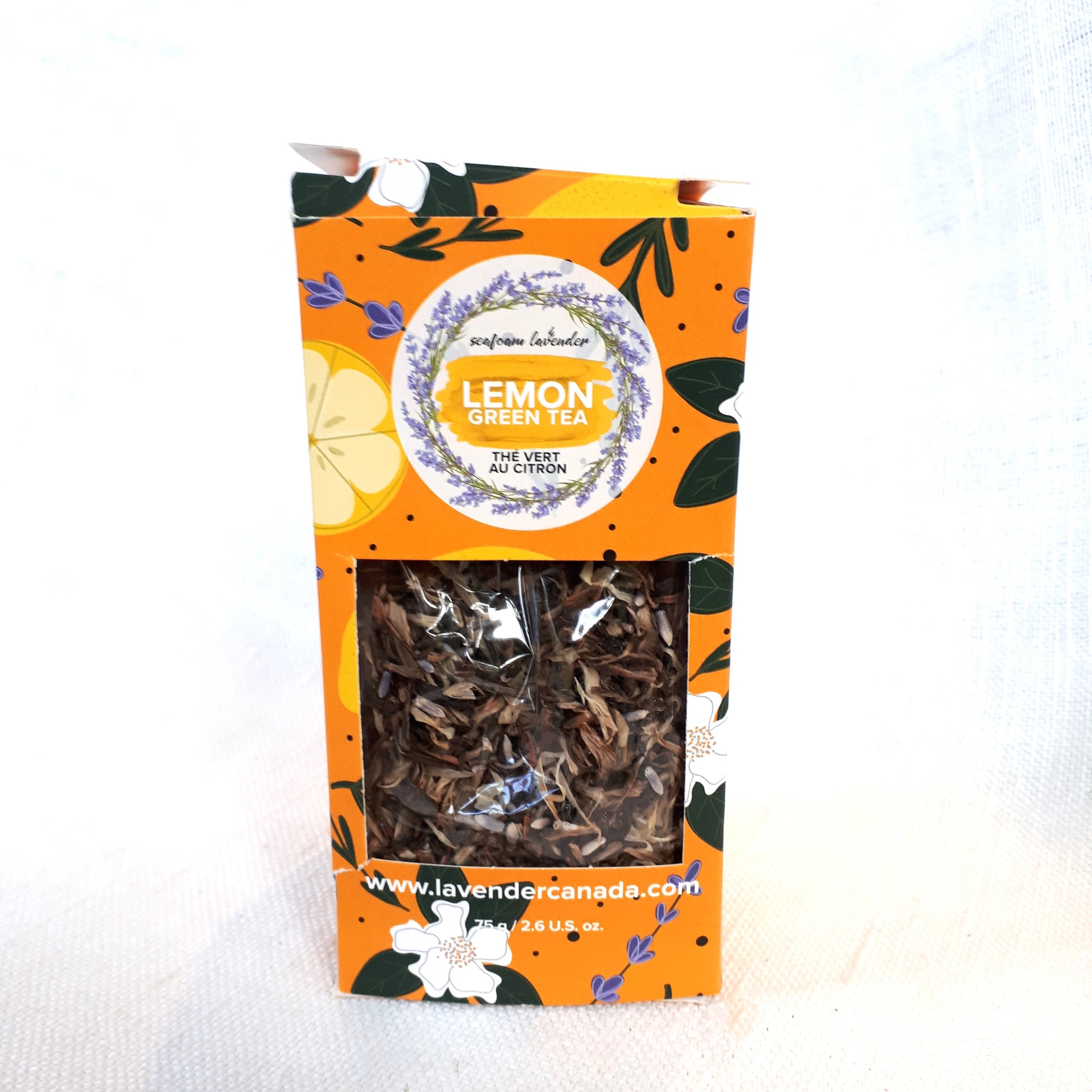- Lemon - green tea with lemon peel, lemon verbena, calendula petals, and lavender