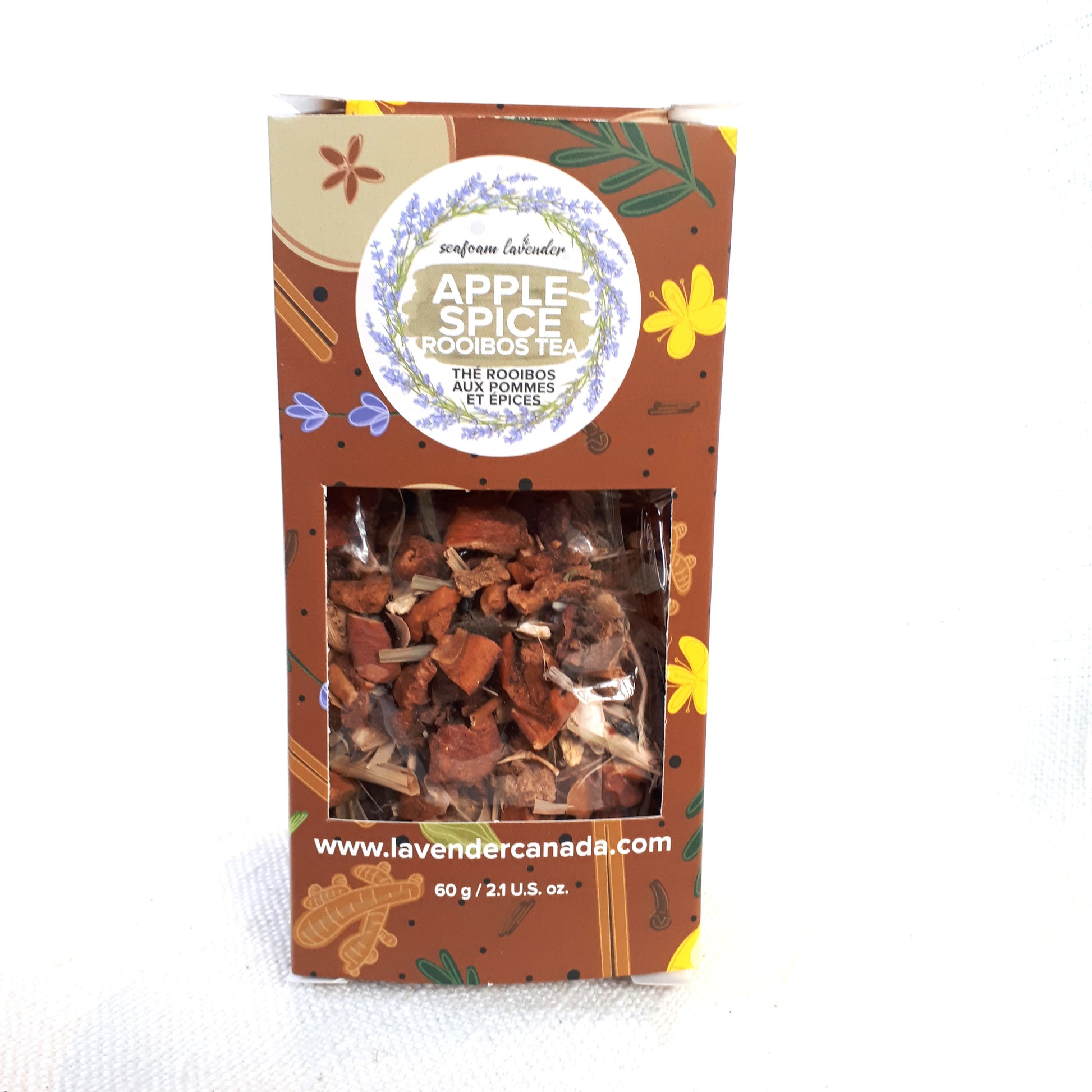 - Apple Spice - rooibos (red) tea with dried apple, cardamom, cinnamon, ginger, St. John's wort, and lavender.
