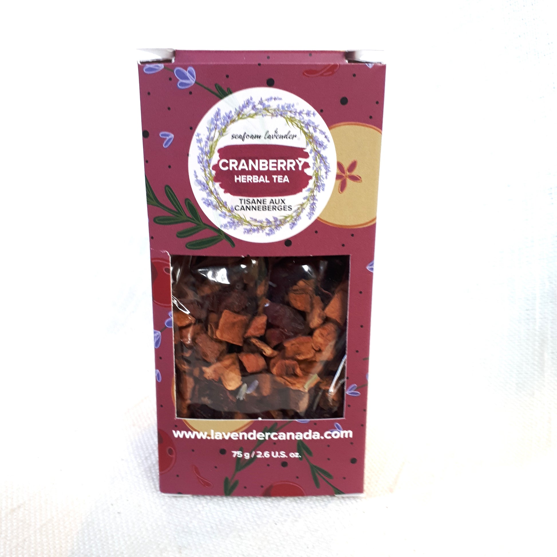 - Cranberry - caffeine-free herbal tea with hibiscus, cranberries, apple, orange peel, rose hips, and lavender