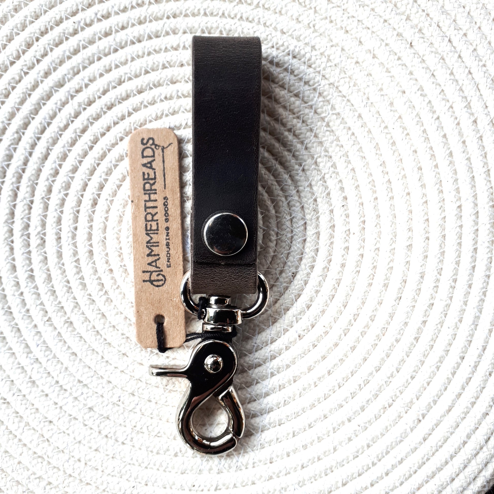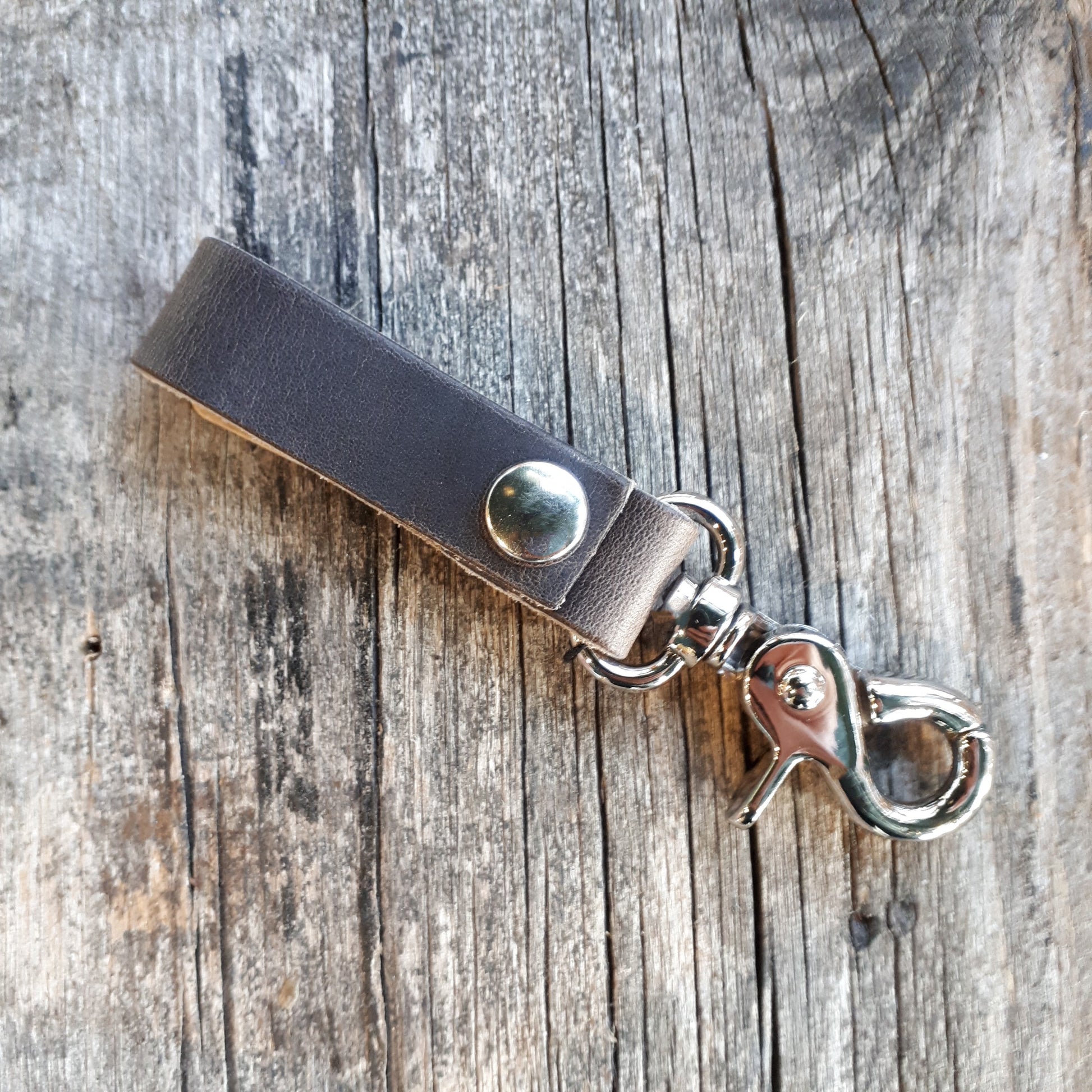 The Belt Latch leather keychain offers a sturdy snap hook with a strap that fits perfectly around most standard belts and straps. This rugged leather keychain can be used to attach all manner of gear. Great for keeping your keys nearby during the day, or a water bottle close at hand on a hike.