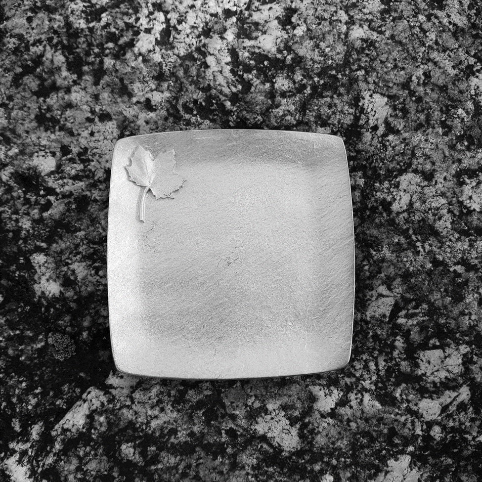 Maple Leaf Square Dish - A small maple leaf on one corner of this sqaure dish make for a simple but classic design. Food Safe. 3.75" square.