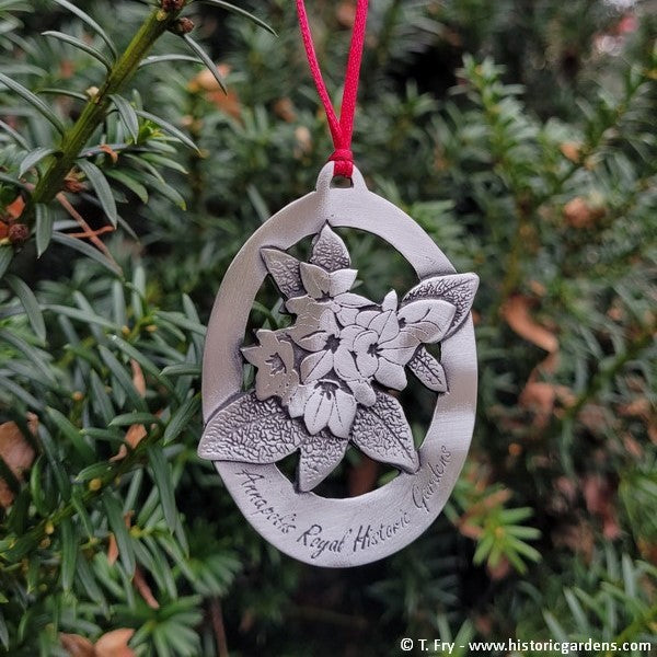 Our annual pewter ornament typically features the various flora and fauna in the Annapolis Royal Historic Gardens throughout the year, as well as recognizing special milestones. Be sure to collect them all!