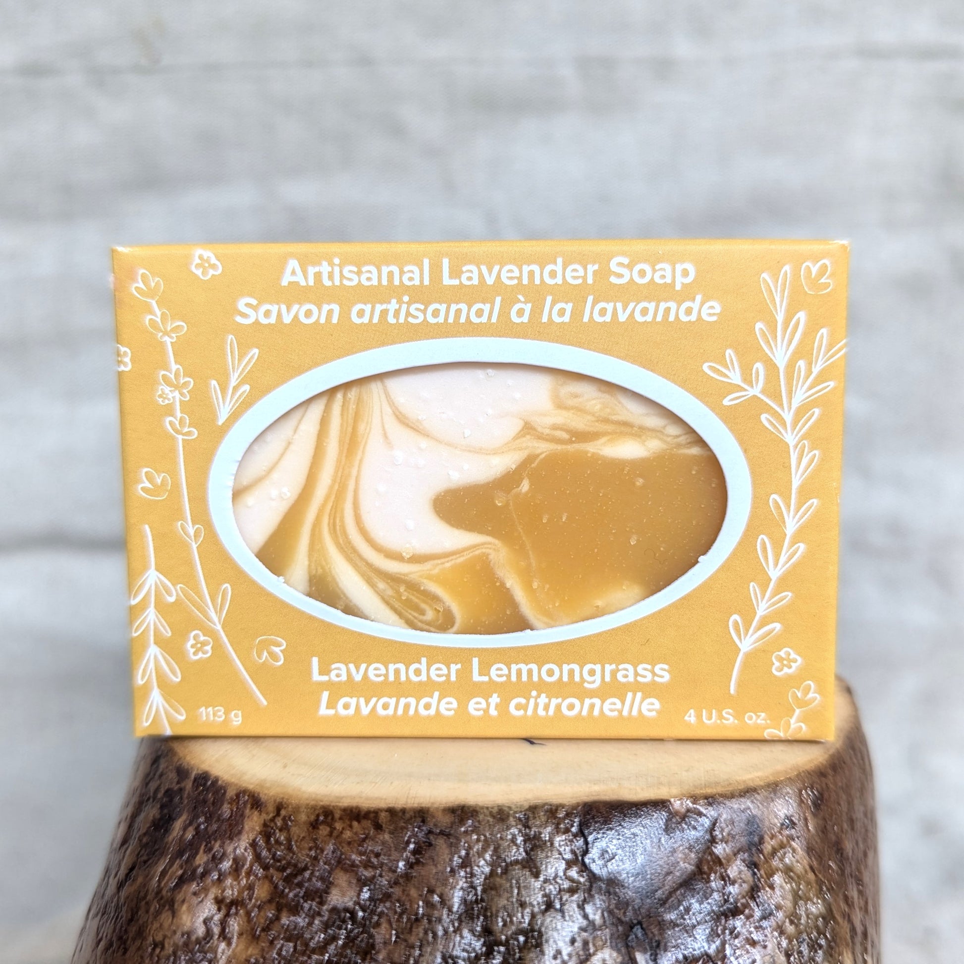 These mild, Castile-formula bar soaps are handmade with natural ingredients, including vegetable oils and butters; mineral and plant-based colourants; and no synthetic preservatives, petroleum by-products, or artificial fragrances. Each bar contains pure lavender essential oil.